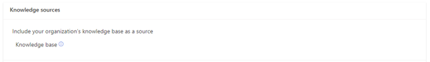 Seleccione Knowledge base para dejar que Copilot utilice recursos internos de la base de conocimientos a fin de generar respuestas. Esta característica le permite utilizar artículos de la knowledge base para la característica hacer una pregunta y redactar el borrador de un correo electrónico, tanto en el panel de ayuda de Copilot como en el editor de texto enriquecido. De forma predeterminada, esta opción está desactivada. El sistema actualiza diariamente el contenido de la knowledge base.