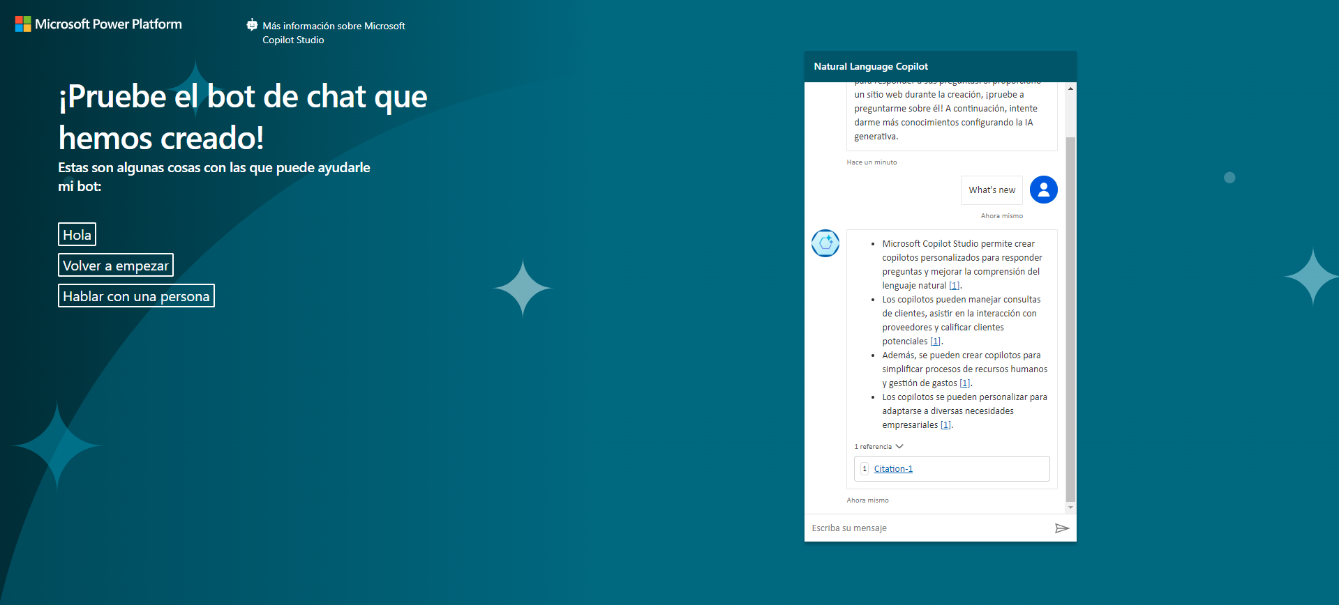 Cada vez que actualice el agente, puede volver a publicarlo desde la propia aplicación Copilot Studio. La publicación de su agente se aplica en todos los canales en los que haya insertado o conectado el agente.