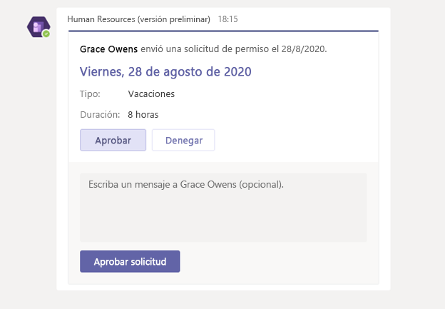Los responsables pueden aprobar solicitudes permisos en Teams.