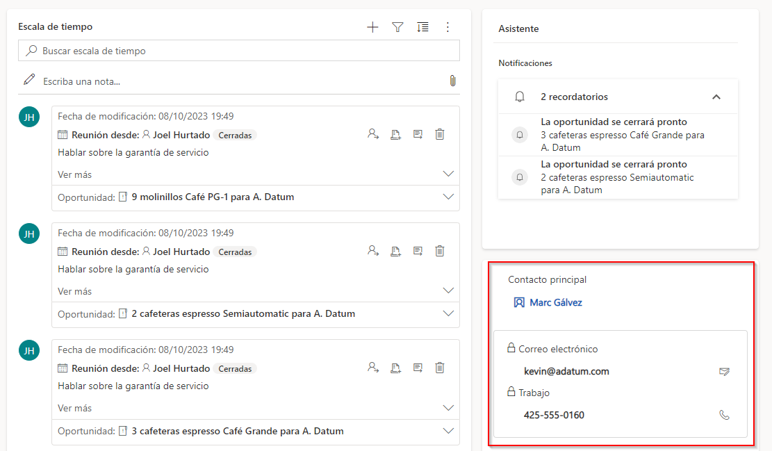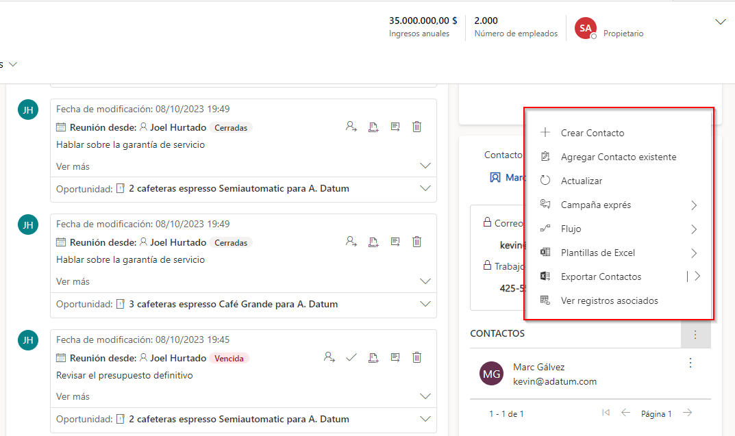 Para obtener más información, consulte Administrar cuentas y contactos.