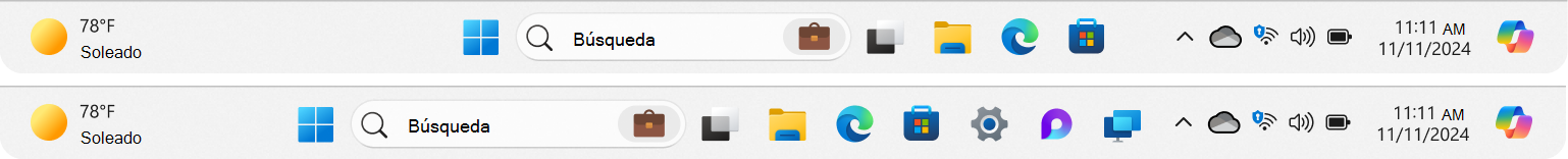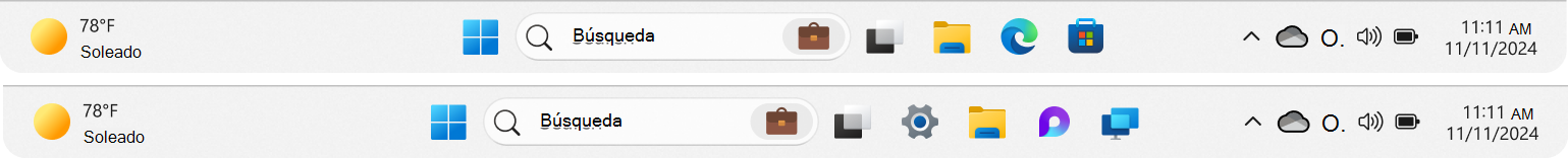 En una actualización del sistema operativo Windows, las aplicaciones ya están ancladas a la barra de tareas. El diseño de la barra de tareas aplica la lógica siguiente: