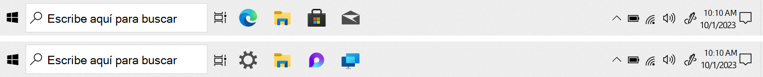 En una instalación limpia de Windows, si aplica un diseño de barra de tareas, las siguientes aplicaciones se anclan a la barra de tareas: