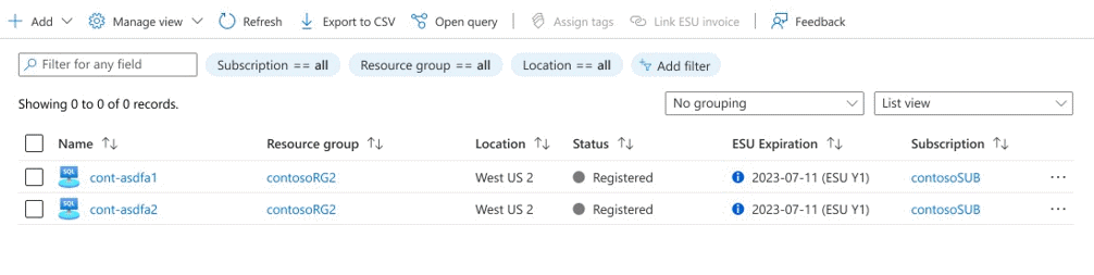 Follow these steps to link an ESU invoice to your Azure Arc SQL Server instances to get access to extended updates. This example includes both Connected and Registered servers.