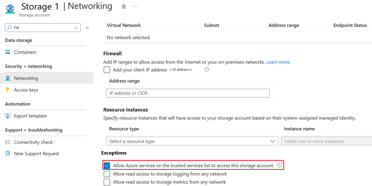 Error Code: UserErrorStorageAccountInternetRoutingNotSupported