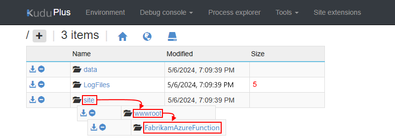 After the next page appears, from the folder list, select site > wwwroot > your-function.