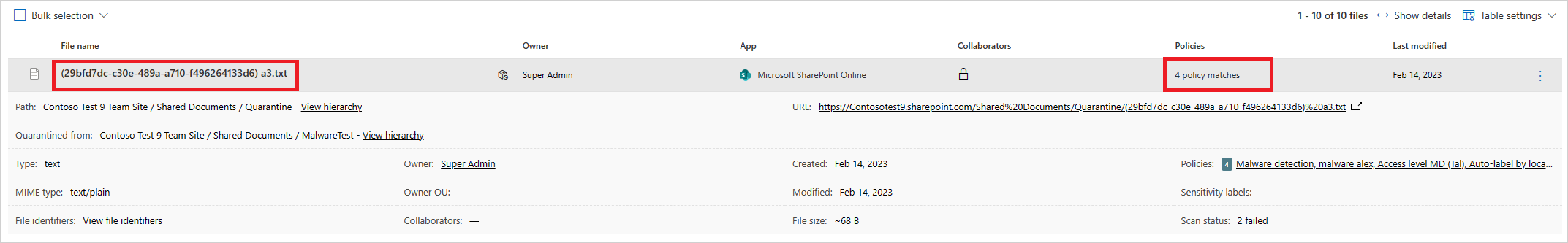 - Matched policies - See a list of policies the file matched.