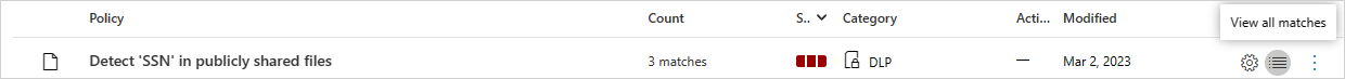 In the list of policies, on the row in which the policy that triggered the investigation appears, in the Count column, select the matches link.