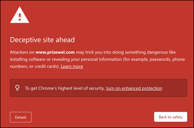 A URL reputation service might identify one or more of the URLs that are used by Attack simulation training as unsafe. Google Safe Browsing in Google Chrome blocks some of the simulated phishing URLs with a Deceptive site ahead message. While we work with many URL reputation vendors to always allow our simulation URLs, we don't always have full coverage.