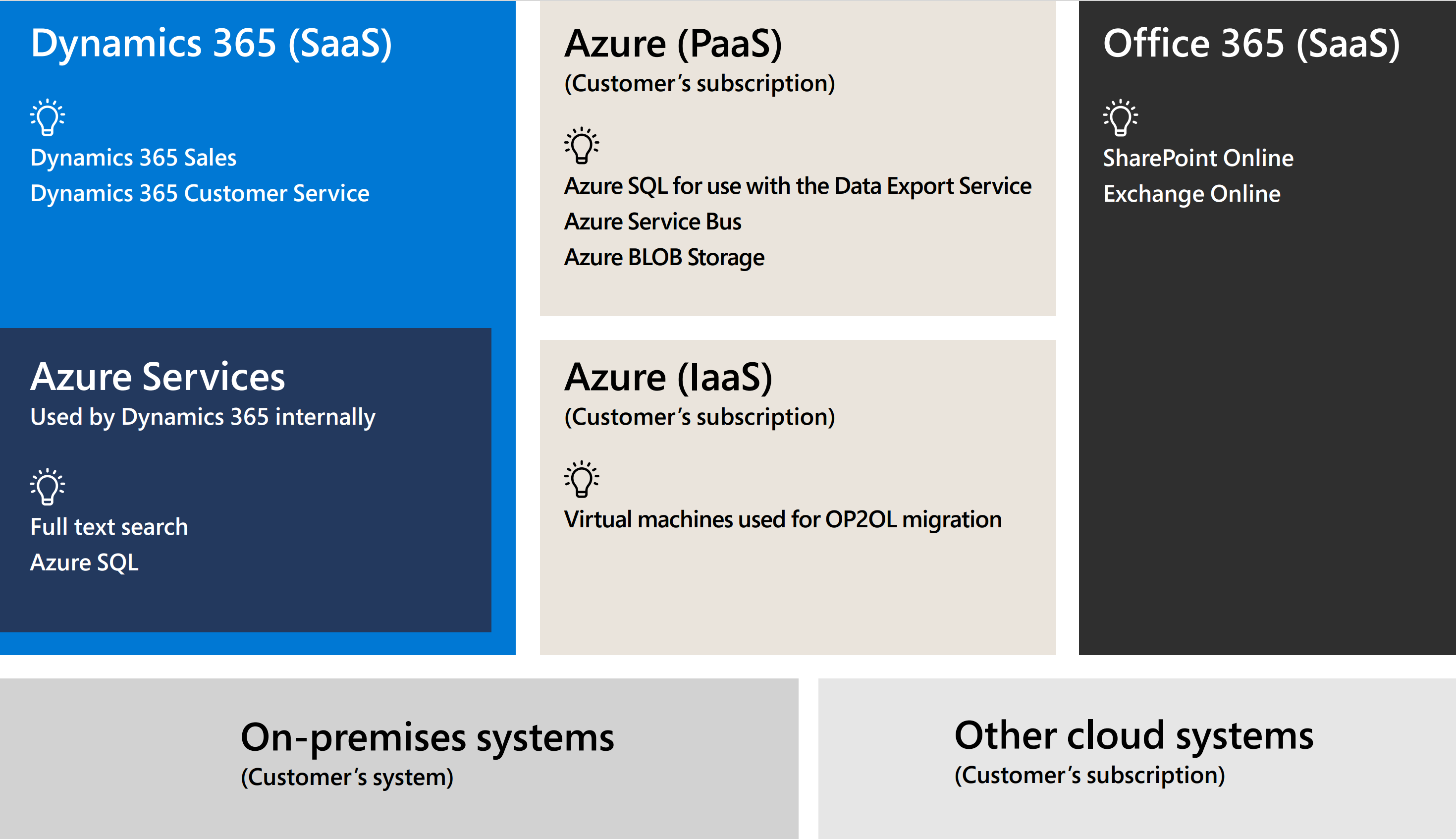 Most Dynamics 365 implementations have integrations with a range of Azure services, on-premises systems, and cloud systems.