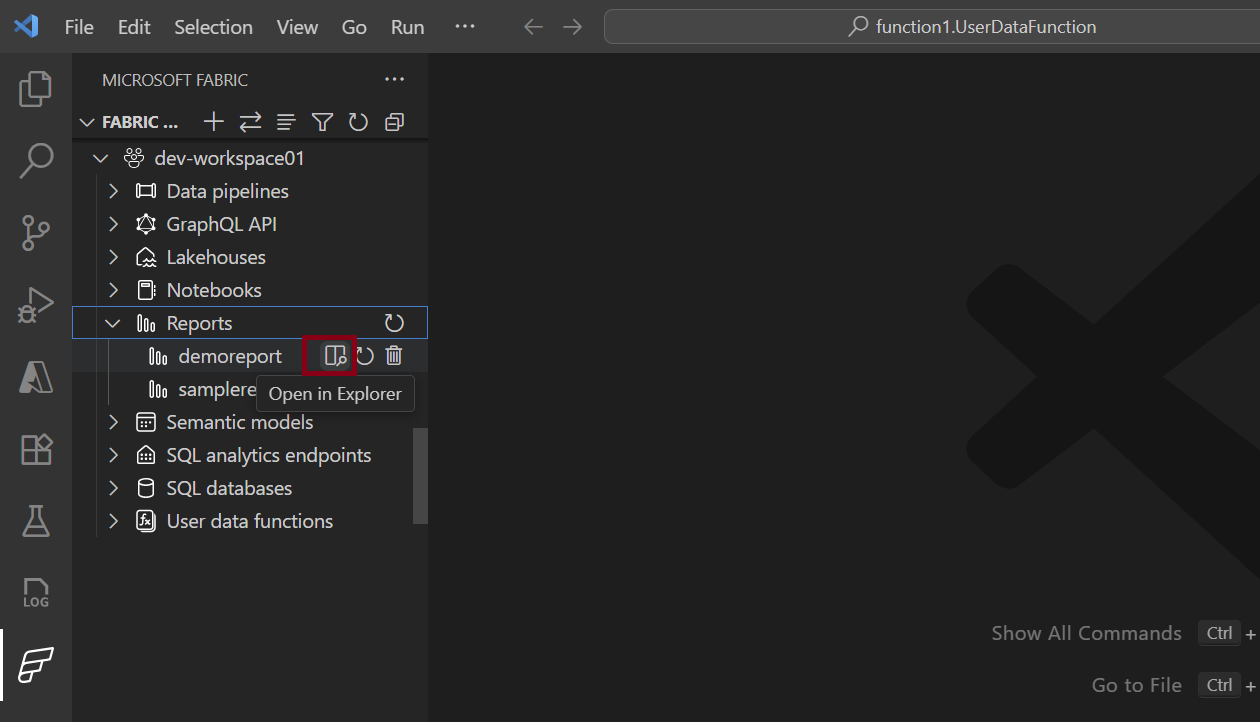 - Manage your user data functions in Fabric from within VS Code.