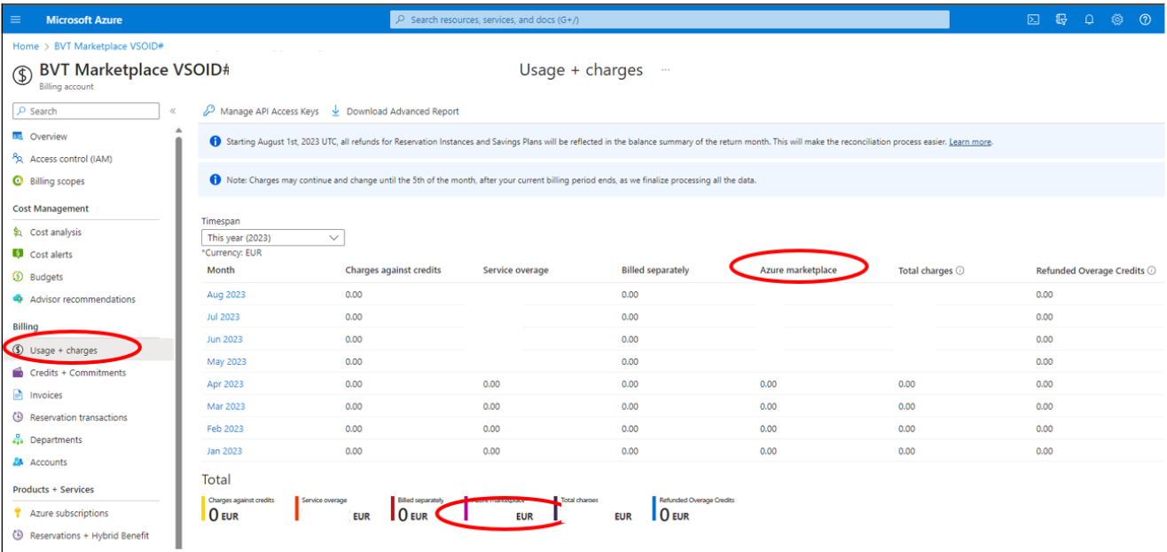 To find detailed information regarding your Marketplace charges, use the cost details file, which you can download from the Azure portal.