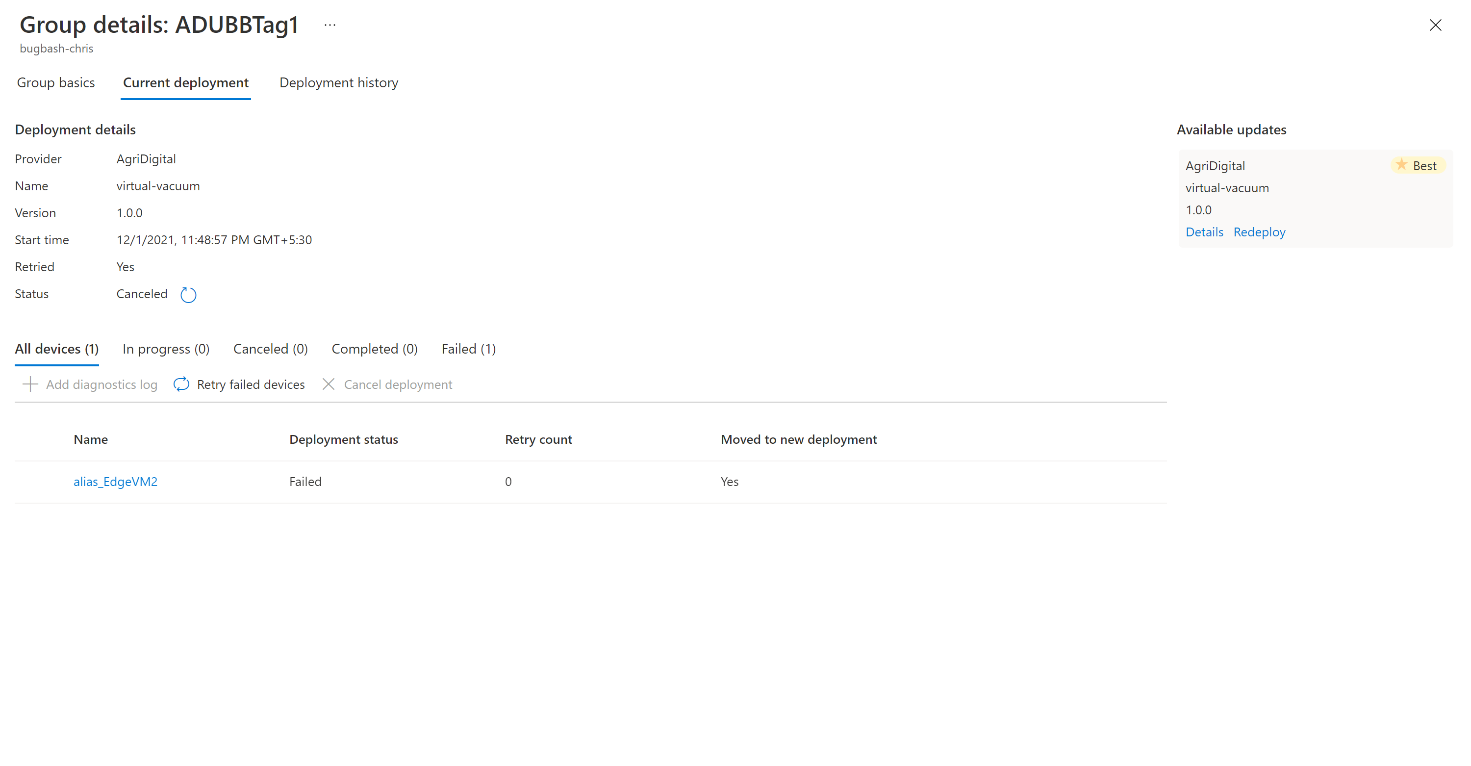 If your deployment fails for some reason, you can retry the deployment for failed devices.