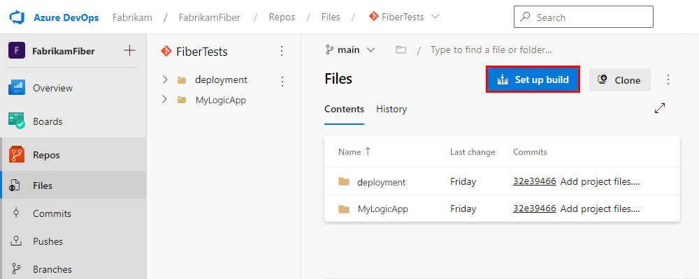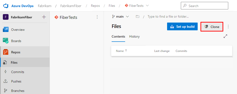 En Azure DevOps, vuelva al proyecto de equipo y al panel Repositorios>Archivos.