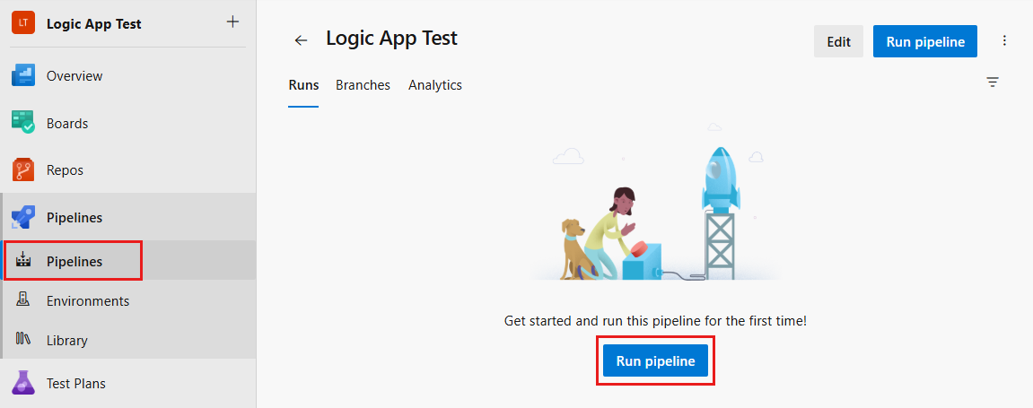 En el menú izquierdo del proyecto de equipo, expanda Canalizaciones y seleccione Canalizaciones.