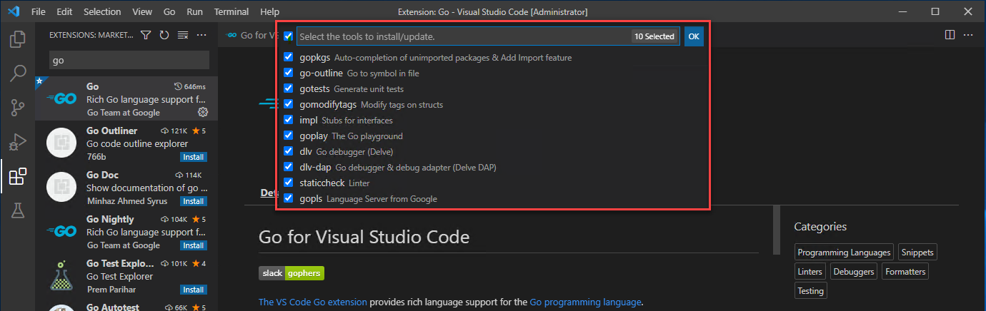 3. Instalar la extensión Go