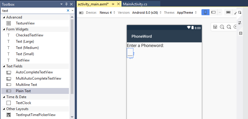 TextView translatedPhoneWord = FindViewById<TextView>(Resource.Id.TranslatedPhoneWord);