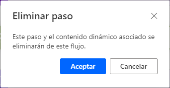 Eliminar paso: puede eliminar el paso actual en el que se encuentra. Aparecerá un cuadro de diálogo, en el que se confirma si desea eliminar el paso.