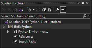 Una solución de Visual Studio es un contenedor que le ayuda a administrar uno o varios proyectos relacionados como un grupo. Visual Studio muestra las soluciones en el Explorador de soluciones. La solución almacena las opciones de configuración que no son específicas de un proyecto. Los proyectos de una solución también pueden hacer referencia entre sí. Por ejemplo, ejecutar un proyecto de aplicación de Python puede compilar automáticamente un segundo proyecto, como una extensión de C++ que usa la aplicación de Python.