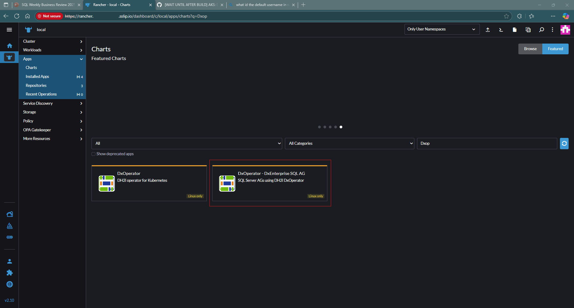From the list of available charts, search for DxOperator - DxE + SQL Server AG.