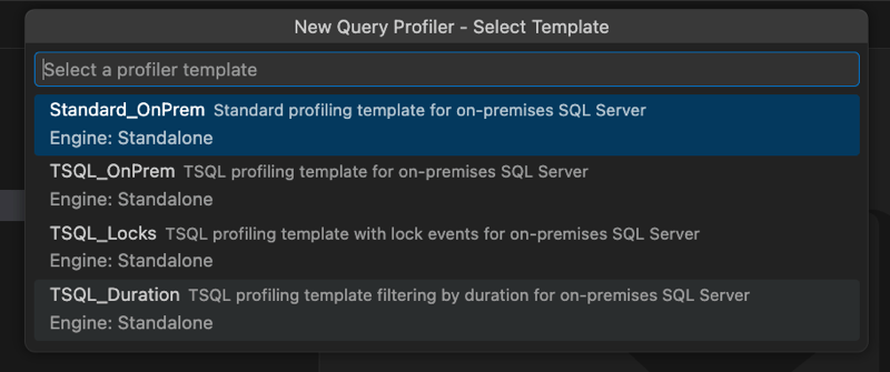 .xelfiles in a read-only Profiler grid. - Automatically select the appropriate template for Azure SQL Database targets (