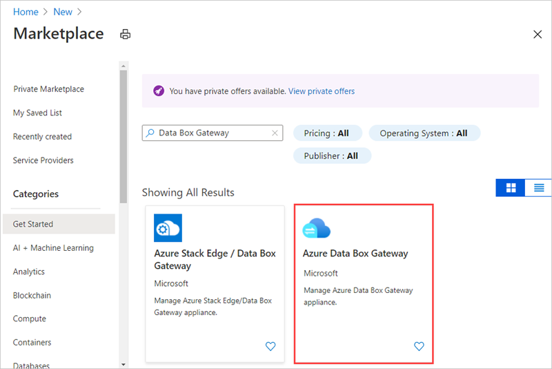 Type Data Box Gateway in the search box, and press Enter.