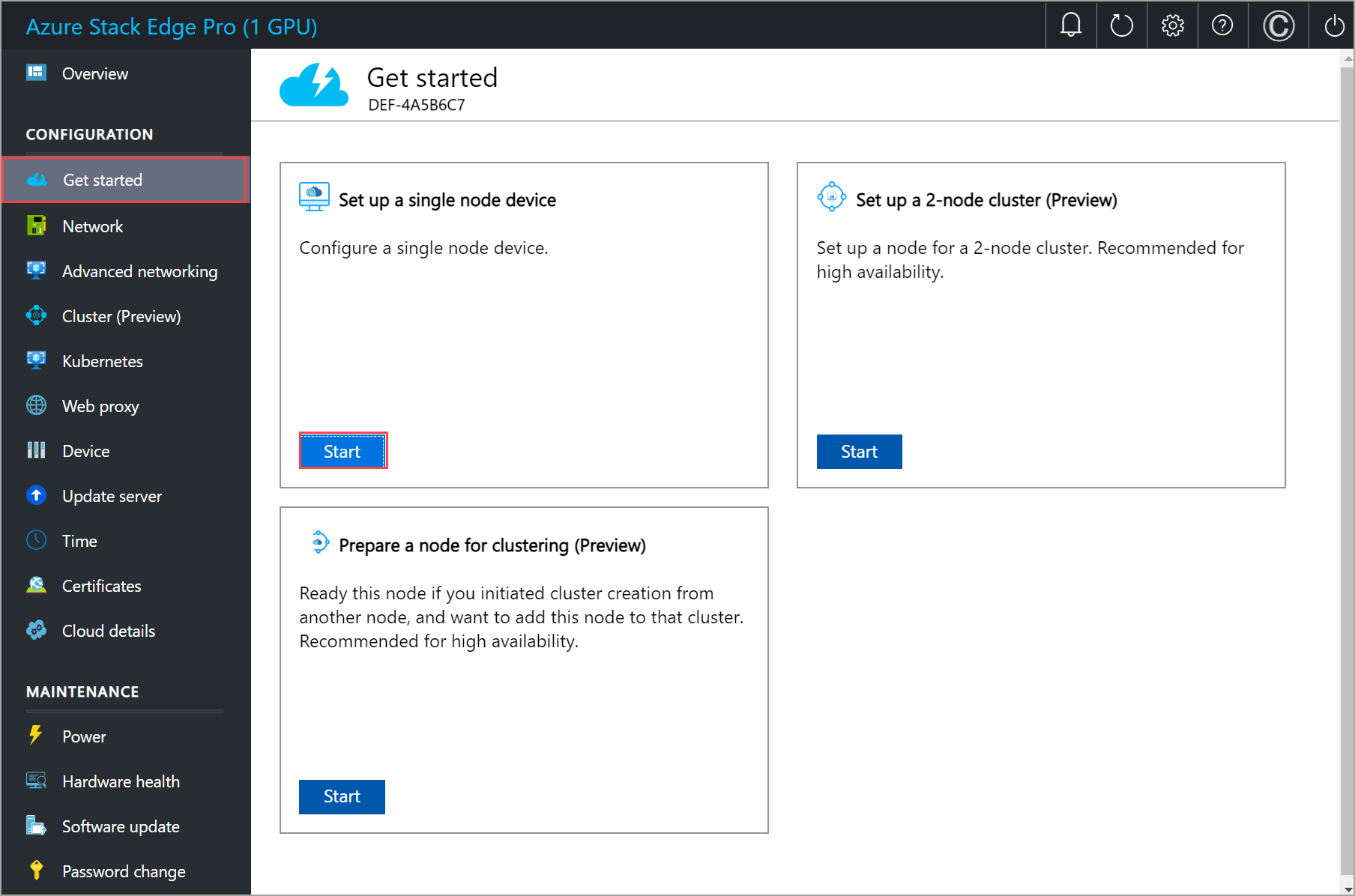 - Connect to the local web UI of the device as detailed in Connect to Azure Stack Edge Pro with GPU.