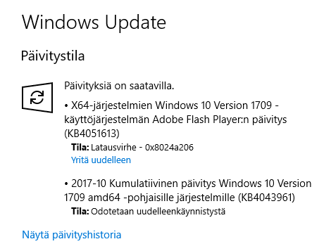 Nyt, kun koneeni WLAN ainakin vielä toimii, en viitsisi ladata koneelle mitään päivityksiä, vaikka saatavilla olevista päivityksistä tuli juuri ilmoitus. Pelkään, että WLAN lakkaa taas toimimasta jonkun uuden päivityksen jälkeen. Osaatko sanoa, kannattaako minun tehdä näitä päivityksiä (kuva)? Tosin ne varmasti tulevat jossain vaiheessa pakostikin eteen. En ole täysin varma, mutta kun aiemmin katsoin päivityshistoriaa, näytti joku kumulatiivinen päivitys ajoittuneen juuri sille ajankohdalle, kun näitä WLAN-ongelmia alkoi minulla ilmetä. Olisi todellakin tarpeellista, että saisitte selvitettyä, mikä näitä ongelmia WLAN:in kanssa oikein aiheuttaa, koska selvästi en ole ainoa, joka näistä kärsii. Joudun käyttämään konetta joka päivä koulussa ja on todella rasittavaa, kun joutuu koko ajan miettimään, toimiikohan WLAN tällä kertaa vaiko ei.