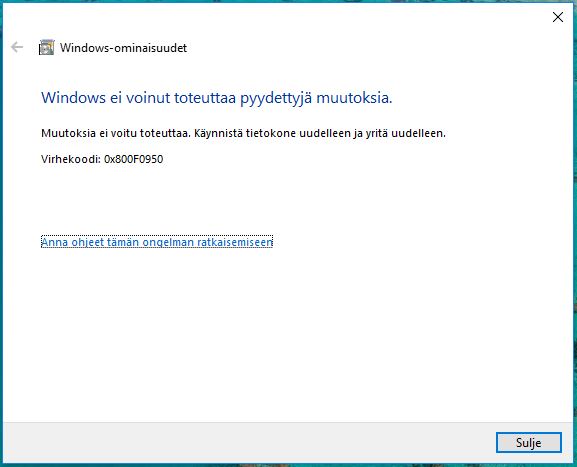 Suosittelen seuraavaksi tarkistamaan koneen ryhmäkäytännöistä seuraavan: