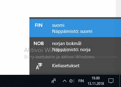 Voit lisäksi samalla kertaa estää mahdolliset tahattomat näppäinyhdistelmiin perustuvat kielivaihdokset muuttamalla Kielipalkin asetuksia. (Voit kuitenkin aina halutessasi vaihtaa näppäimistökieltä tehtäväpalkista / Kielipalkilla.) Näin menetelläksesi, ole hyvä ja: