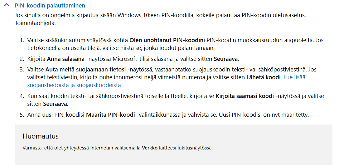 Kun laite on yhteydessä verkkoon, voit käyttää heti uutta Microsoft-tilin salasanaa kirjautumiseen. Mikäli taas laite ei ole yhteydessä verkkoon, sinun tulee käyttää edellistä laitteella käyttämääsi salasanaa.