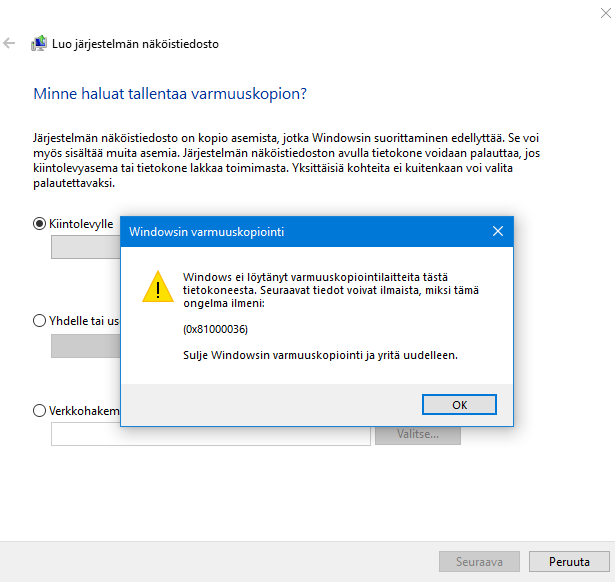 Eli tässä olisi sitten aika siirtyä käyttämään toisia ratkaisuja järjestelmän varmuuskopiointiin. Henkilökohtaisten tiedostojen varmuuskopiointiin Windows 10:ssä voi käyttää Tiedostohistoriaa.
