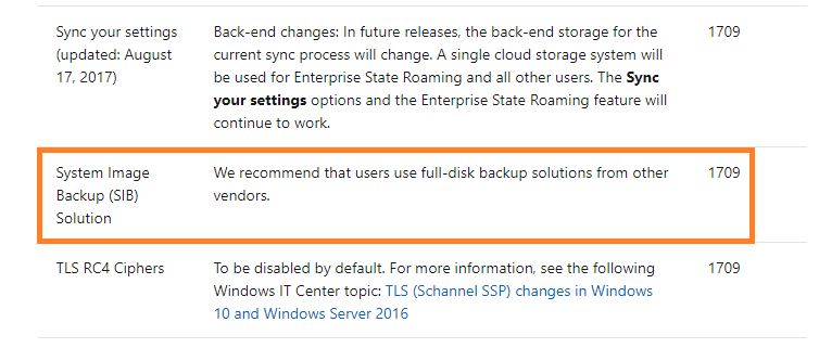 Hän huomautti että järjestelmän näköistiedoston luomistoimintoa ei enää suositella ja että sen kehitys on päättynyt koontiversiossa 1709. Hän ehdotti että käytät varmuuskopiointiin jotakin asiaan soveltuvaa kolmannen osapuolen ohjelmistoa.