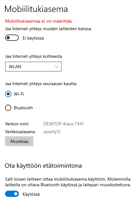 Sinun on ehkä ostettava USB Wi-Fi -kortti, jotta voit käyttää kaikkia WLAN-ominaisuuksia uusimmassa Windows-versiossa.