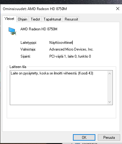 Olen palauttanut järjestelmän, olen päivittänyt Win 10, ja näytön ohjaimen