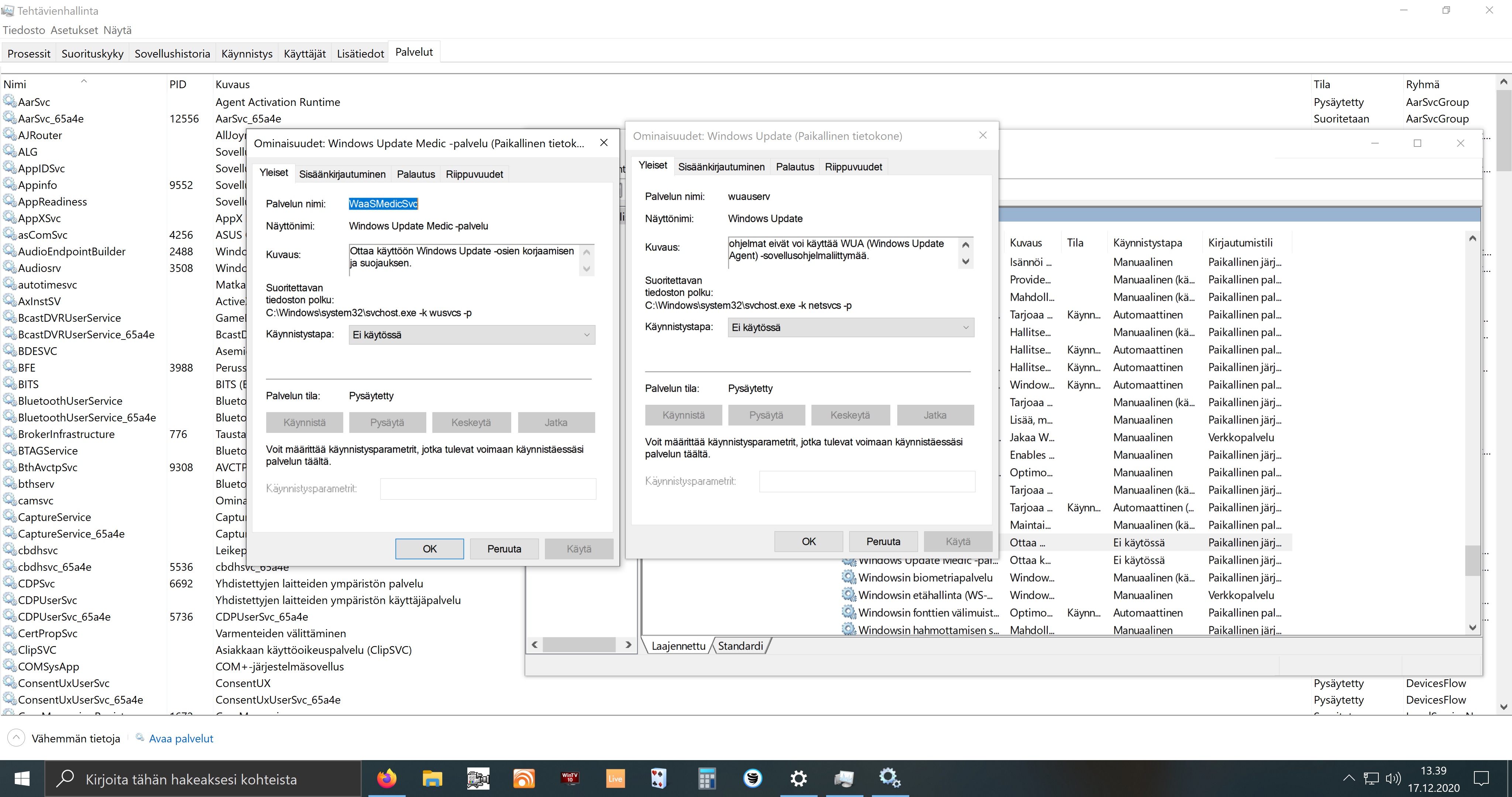 HKEY_LOCAL_MACHINE\JÄRJESTELMÄ\CurrentControlSet\Palvelut\WaaSMedicSvc