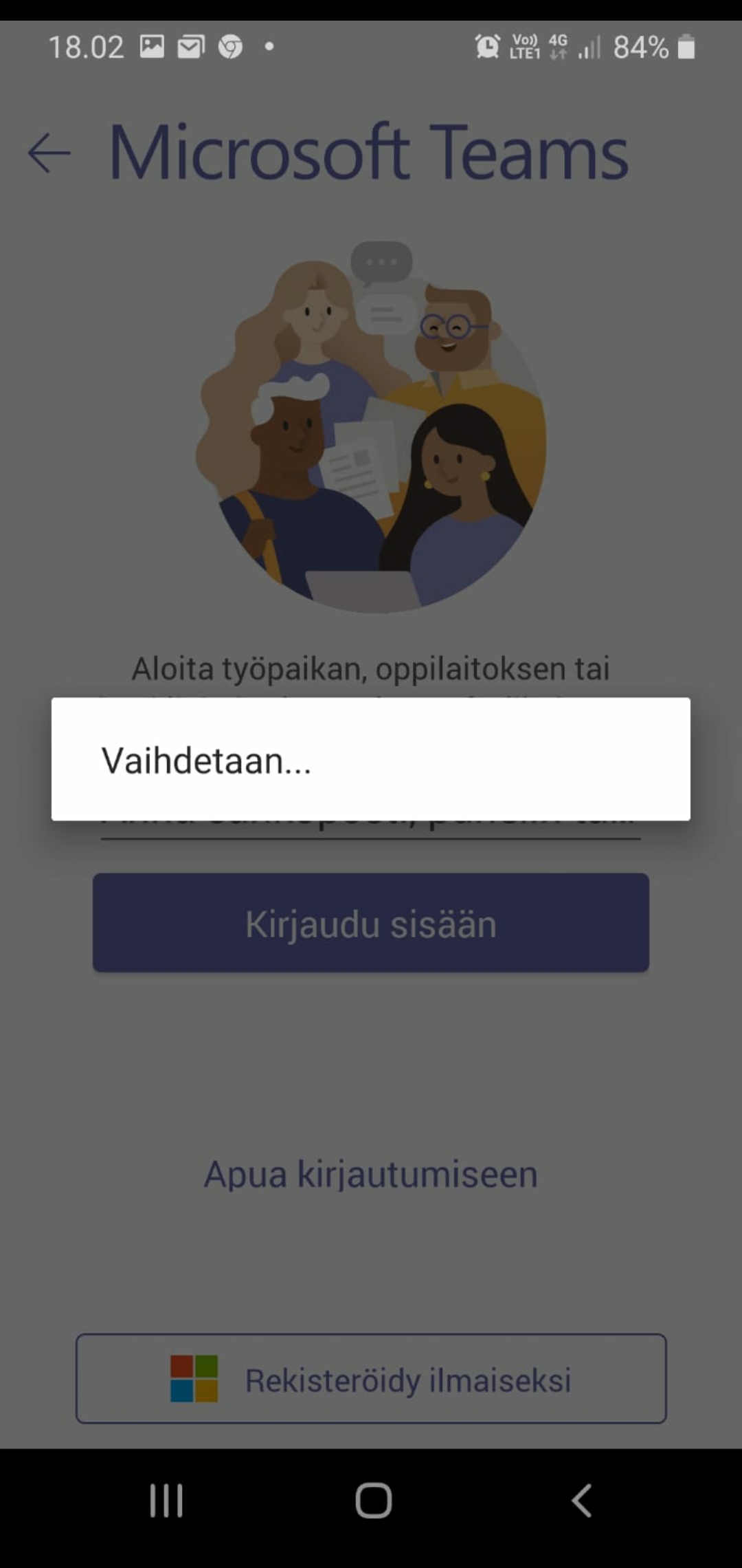 Kun yritän kirjautua sisään Microsoft teamsiin, tulee liitteen kuvan mukainen "virheilmoitus".