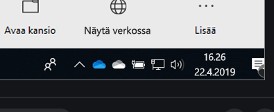 Tietokoneen alapalkissa pitäisi näkyä valkoinen ja sininen OneDrive kuvake. Minulla näkyy ainoastaan sininen kuvake, Miten saan valkoisen näkyviin? Aiemmin näkyi molemmat, enää ei näy.