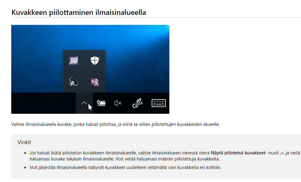 Ei ollut apua myöskään tuosta piilotetut kuvakkeet ohjeesta.