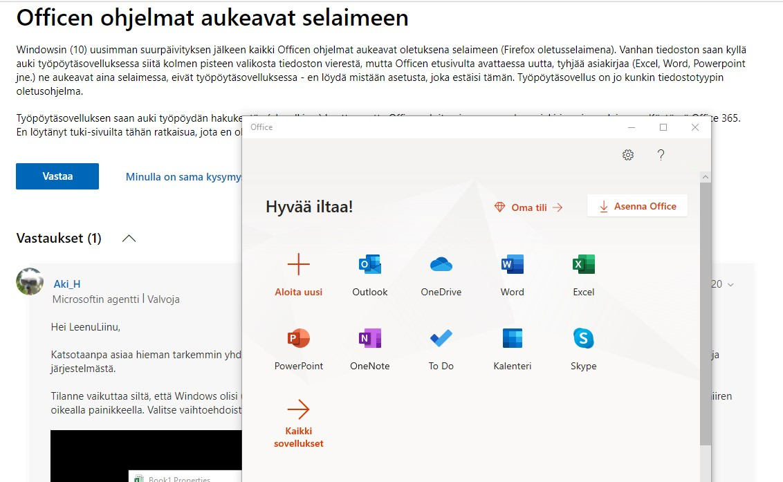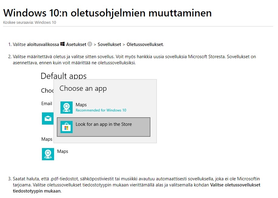 Tarkistaisitko vielä uudemman kerran nuo ohjelmistot, joita Windowssin kanssa on asetettu näille tiedostotyypeille. Tiedot löytyy kun menet Asetukset > Sovellukset> Oletussovellukset > valitse oikeat sovellukset tiedostotyypeille. Lisää ohjeita TÄÄLTÄ.