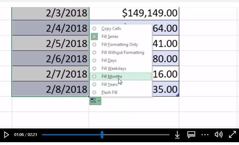 Näin tein muutaman viikon ajan, muta eilen en enää pystynytkään. Automaattisen täytön ikkunan sijaan kahvalla vetäessäni vain kopioin valitsemiani soluja (tai itse asiassa jos valitsen kaksi solua, se kopioi vain ylempää) ja automaattisen täydennyksen ikkunan