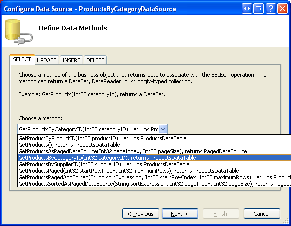 SelectMethod="GetProductsByCategoryID" TypeName="ProductsBLL">