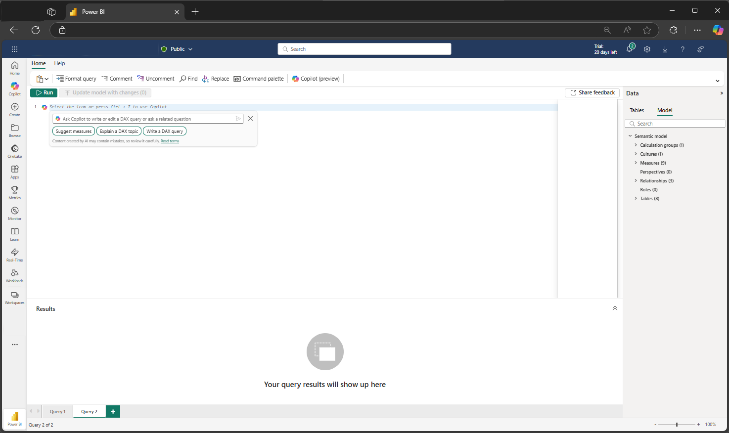 Mikä on Fabric Copilot, joka auttaa kirjoittamaan DAX-kyselyitä?