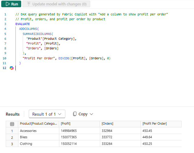 Mikä On Fabric Copilot, joka auttaa kirjoittamaan DAX-kyselyiden aiotun käytön?