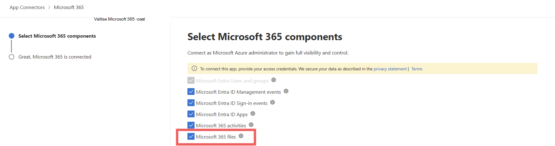 Microsoft 365:n yhdistäminen Defender for Cloud Apps: