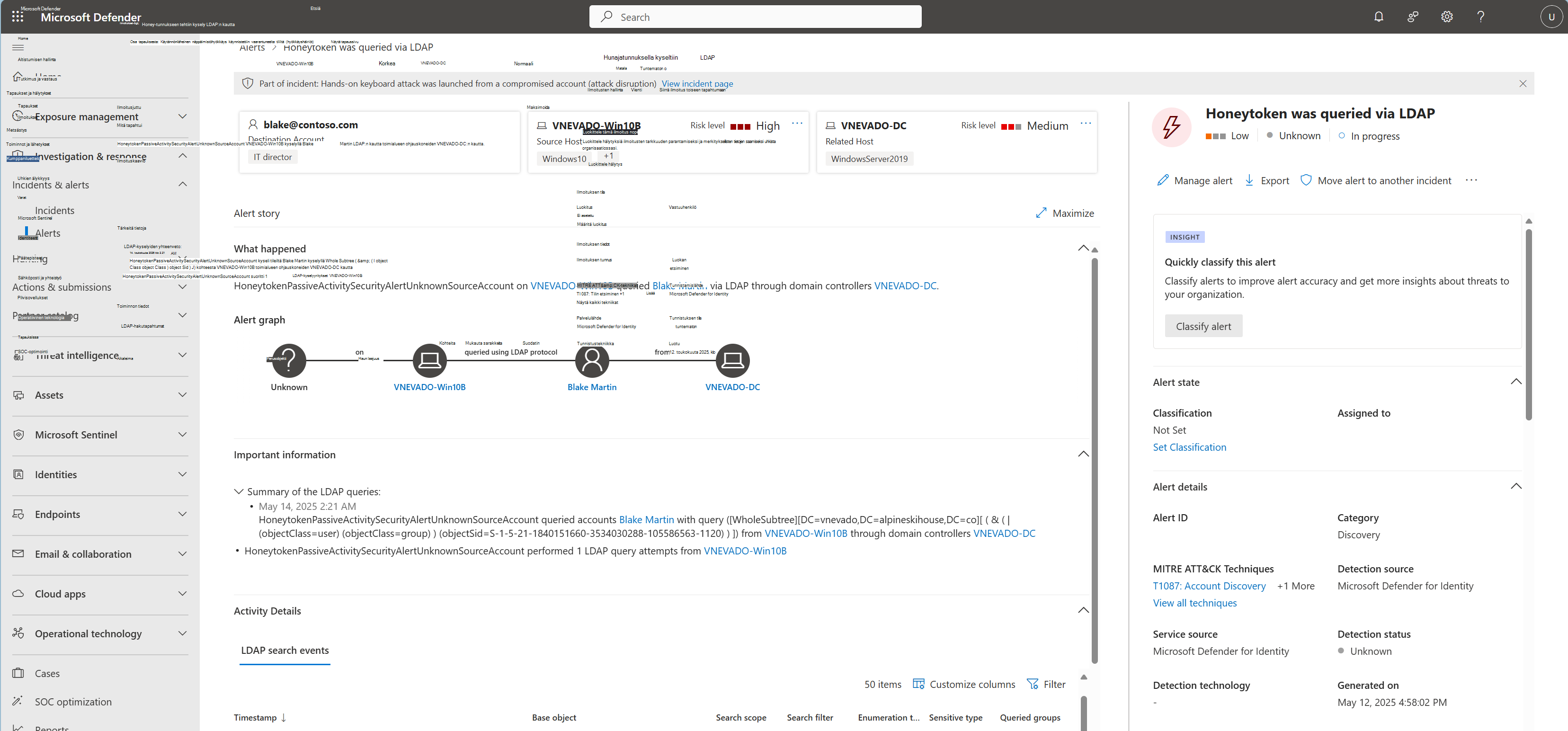 True positive (TP): Defender for Identityn havaitsema haitallinen toiminto.
