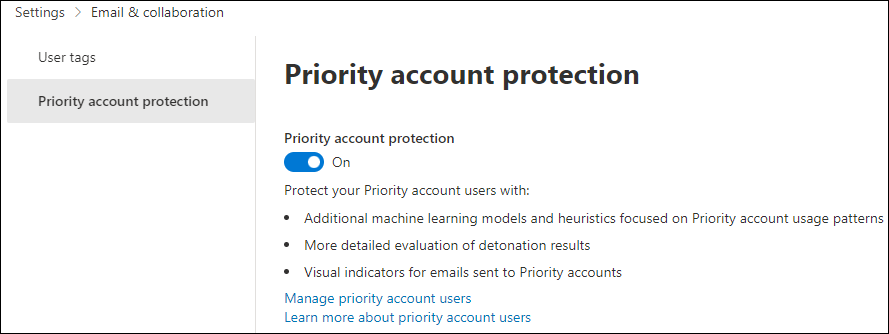 Set-EmailTenantSettings -EnablePriorityAccountProtection $true