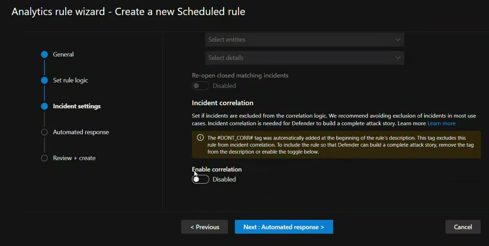 Tässä artikkelissa kerrotaan, miten voit jättää tietyt analytiikkasäännöt pois Microsoft Defender XDR korrelaatiomoduulista. Tämän ominaisuuden avulla organisaatiot voivat Microsoft Sentinel ylläpitää ennustettavissa olevaa tapausten toimintaa ja varmistaa yhteensopivuuden olemassa olevien automaatiotyönkulkujen kanssa.