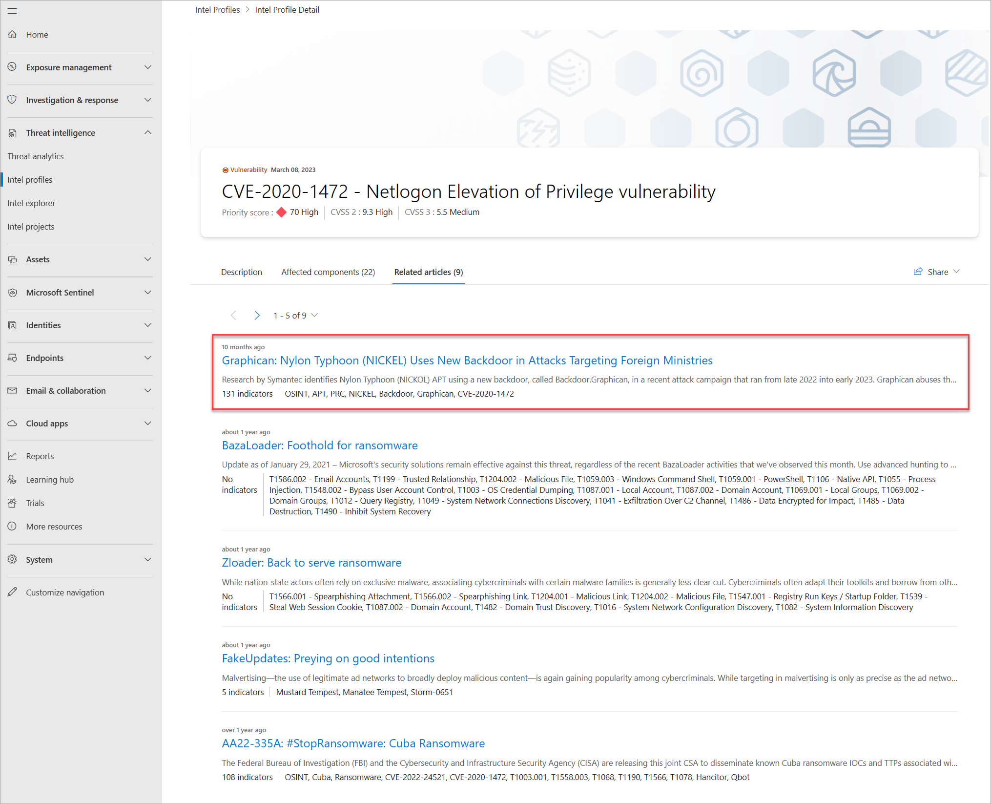 Valitse profiilin Aiheeseen liittyvät artikkelit -välilehti ja valitse sitten artikkeli Grafiikka: Nylon Typhoon (NICKEL) käyttää uutta takaovea hyökkäyksissä, jotka kohdistuvat ulkomaisiin ministeriöihin.