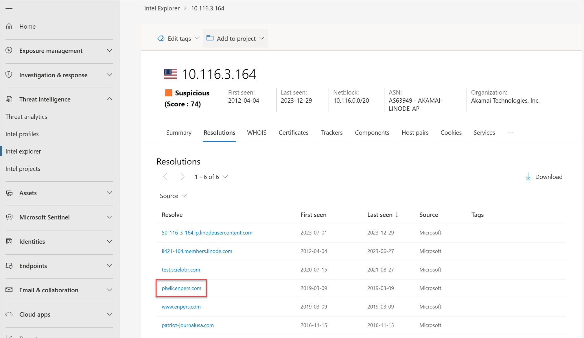 Defender TI voi sisältää reaaliaikaisia, reaaliaikaisia havaintoja ja uhkaindikaattoreita, kuten haitallisen infrastruktuurin ja vastustajien uhkien työkalut. Kaikki Defender TI:n IP-osoitteet ja toimialuehaut ovat turvallisia hakea. Microsoft jakaa verkkoresursseja (esimerkiksi IP-osoitteita, toimialuenimiä), joita pidetään todellisina uhkina, jotka aiheuttavat selkeän ja nykyisen vaaran. Pyydämme sinua käyttämään parasta harkinta-arviota ja minimoimaan tarpeettomat riskit, kun käytät haitallisia järjestelmiä, kun suoritat seuraavan opetusohjelman. Microsoft minimoi riskit purkamalla haitallisia IP-osoitteita, isäntiä ja toimialueita.