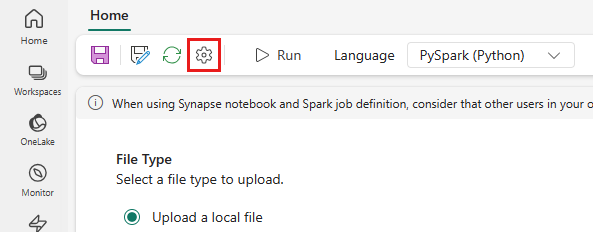 Valitse avautuvan paneelin Nouda tiedot -kohdassa Spark-työn määritys.